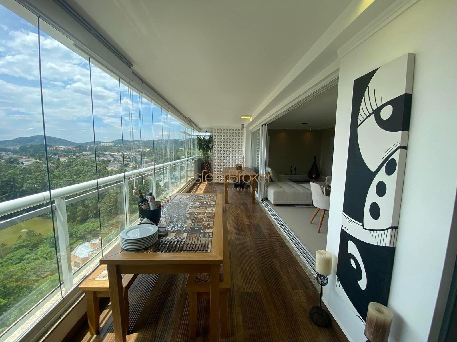 •Varanda fechamento cortina solar e de vidro.