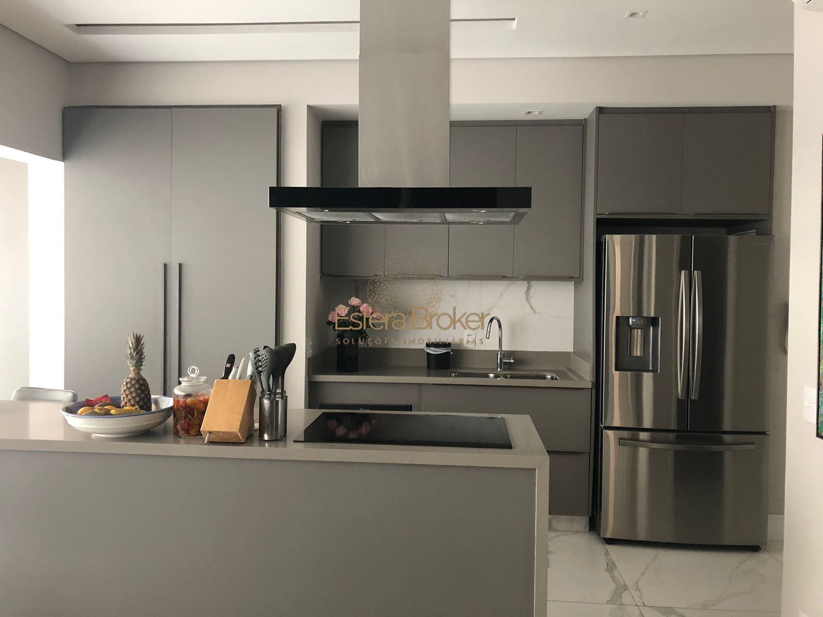 Cozinha em mármore e lavabo em mármore;