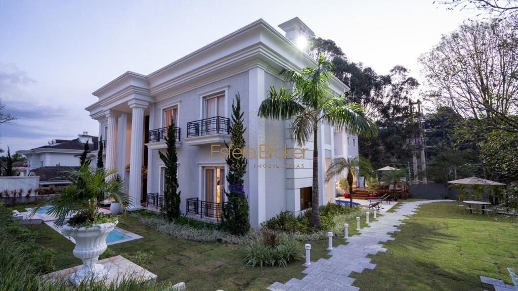 A casa possui diversas suítes, cada uma com banheiro privativo e closet, além de salas de estar, jantar e home theater, cozinha gourmet equipada com eletrodomésticos de última geração, adega entre outras amenidades.