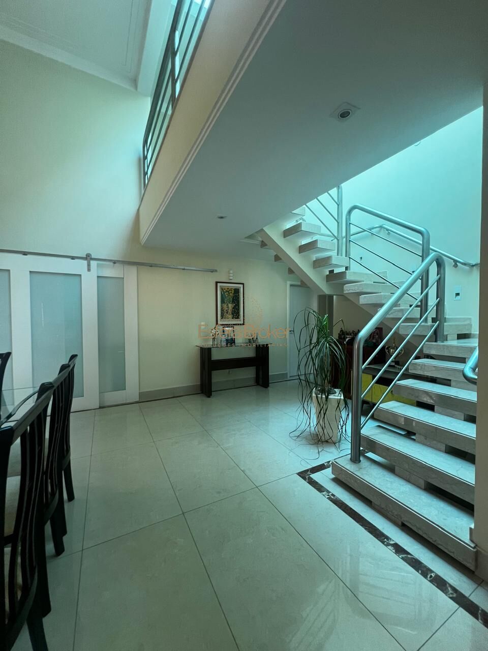Ao adentrar, você é imediatamente impactado pela grandiosidade do ambiente, com uma sala de estar e jantar integradas e um pé direito de 6 metros, que proporciona uma sensação de amplitude impressionante.