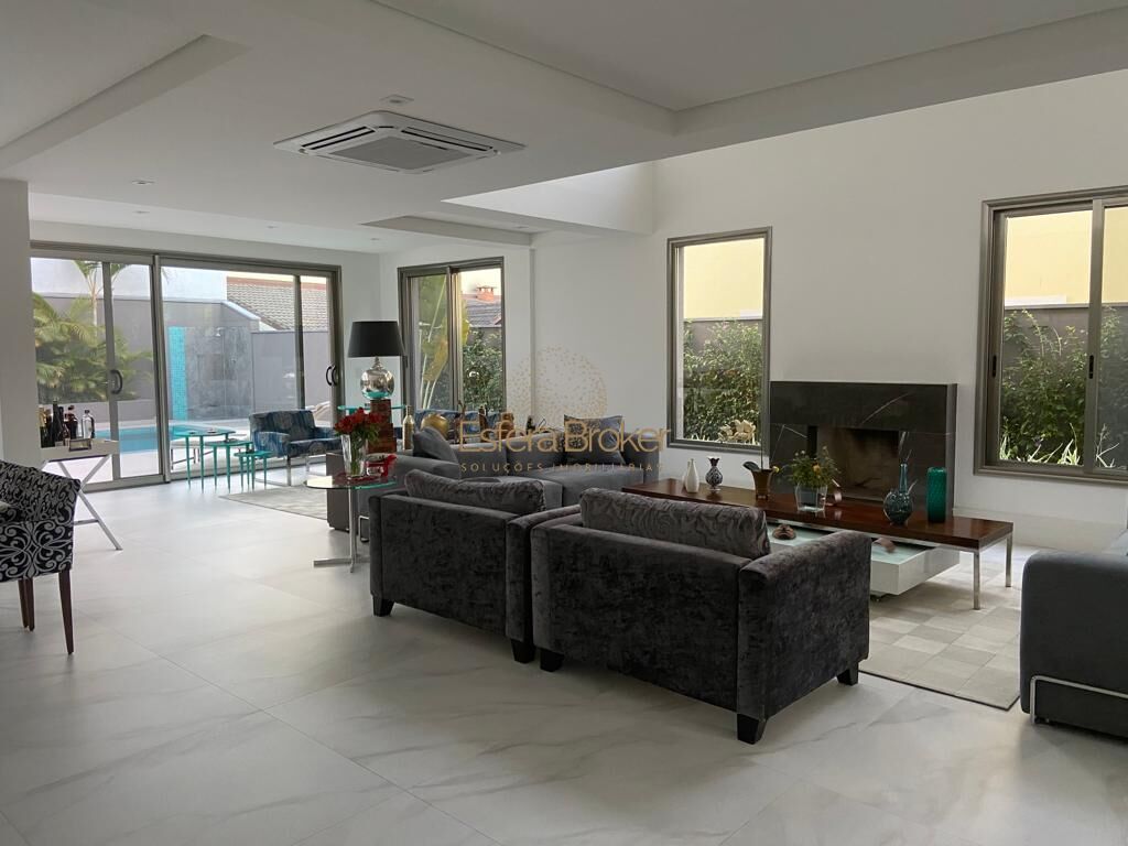 Living amplo com lareira e split cassete e home com acabamentos impecáveis, integração com a área de lazer com piscina e espaço gourmet, preparação para ar condicionado central, projeto de iluminação, cozinha repleta de armários, despensa, lavanderia com armários, quarto e banheiro de serviço.