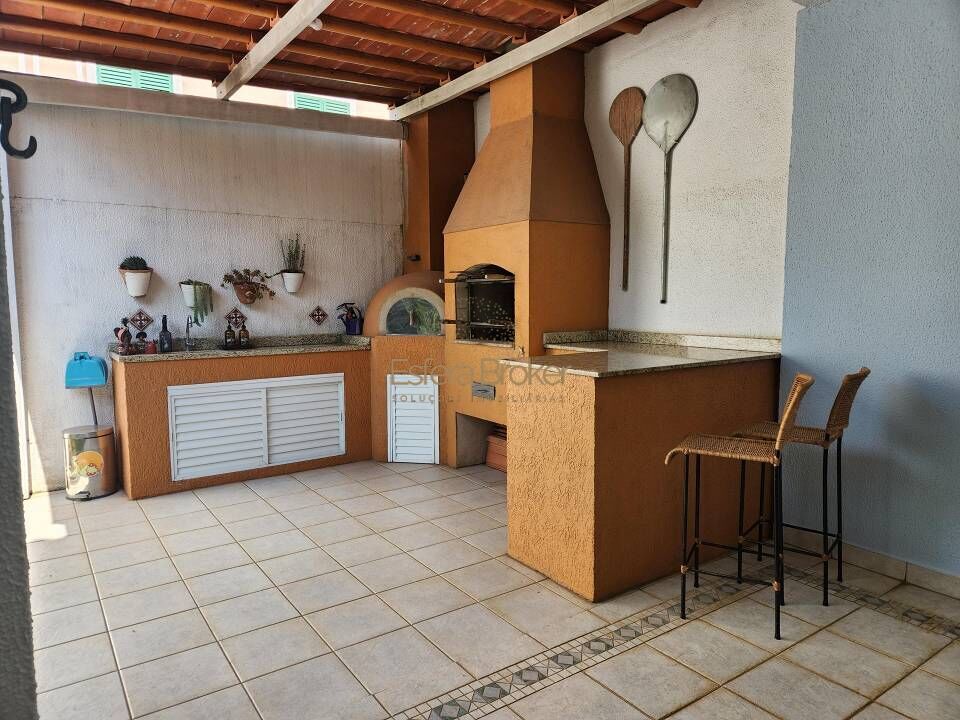 Espaço gourmet com forno de pizza e churrasqueira.
