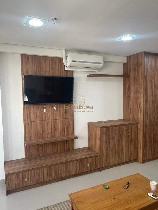 Segurança 24h, está localizado no 17º andar, com varanda, possui banheiro privativo, uma mini copa e ar condicionado. Completamente mobiliada, com móveis planejados em marceneira e TV Smart. Nunca foi habitada